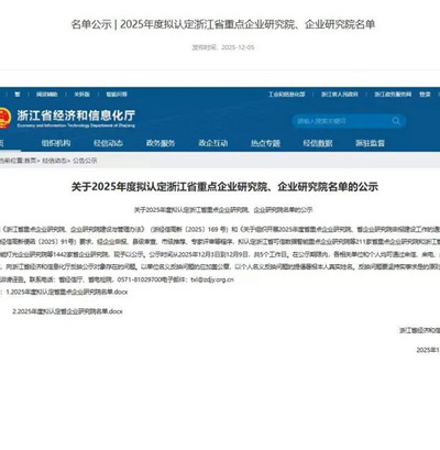 近日,浙江省经济和信息化厅发布了《2025年度拟认定浙江省重点企业研...